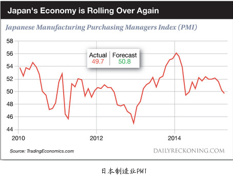 最新发布的《日本蓝皮书(2015)》则显示,自2014年4月1日上调消费税率后,日本的国内需求受到严重打压,此后的经济连续两个季度陷入负增长;“安倍经济学”欲借助日元贬值扩大出口、弥补内需不足的预期也宣告落空。(文章综合凤凰国际iMarkets、国际金融报、新华网、经济参考报等报道)